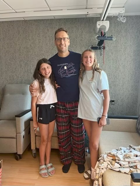 In the spring of 2025, James noticed unexplained bruising that led him to seek medical care. Bloodwork revealed low red and white blood cell counts, and he was diagnosed with Acute Myeloid Leukemia (AML), an aggressive form of leukemia that required immediate treatment. On June 24, James was admitted to Mayo Clinic and began intensive chemotherapy. After months of treatment, James underwent a bone marrow transplant on November 13, a critical step in his recovery. The weeks following the procedure required close monitoring and included a short hospital stay due to complications, but James continued to push forward with strength and resilience. Recovery has brought challenges, including fatigue and difficulty eating as treatments affected his appetite and taste. Slowly, progress has followed. James is regaining strength and celebrating small milestones along the way. A beloved husband to Quinn and proud father to Charlotte and Maeve, James continues to face each step with courage and determination, surrounded by the support and love of family and friends.
